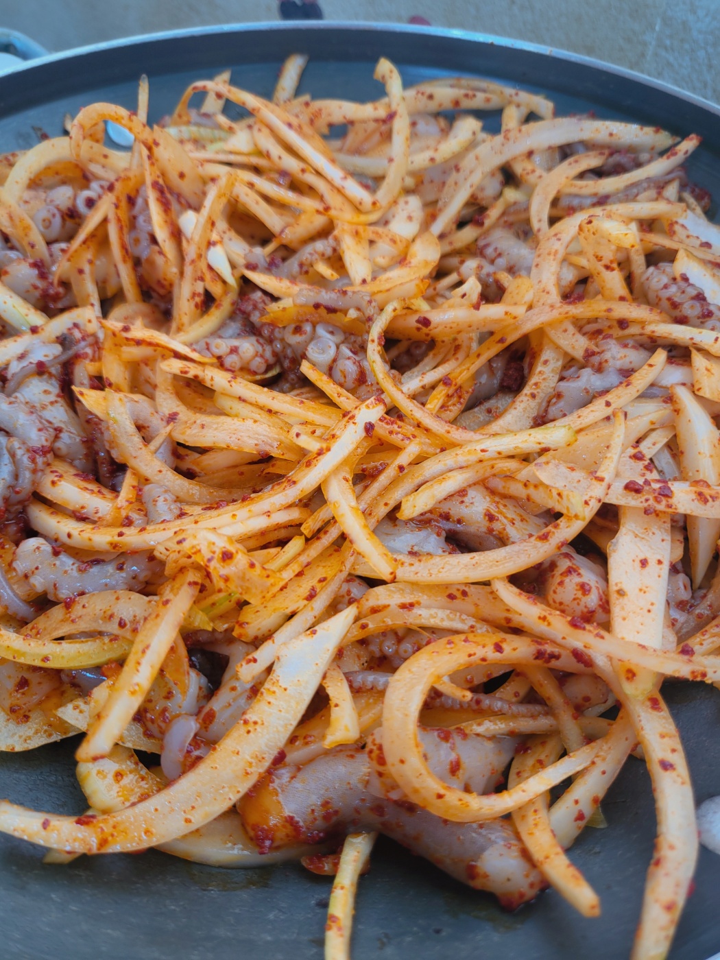 우성식당의 가장 큰 특징은 테이블에서 직접 낙지를 볶아 먹는 방식입니다. 직원분이 테이블마다 돌아다니며 익힘 정도를 확인해주기 때문에 요리 초보도 걱정 없이 맛있게 즐길 수 있어요. 낙지볶음은 자극적이지 않으면서도 감칠맛이 강하고, 양파의 단맛과 낙지의 쫄깃한 식감이 정말 잘 어우러집니다.