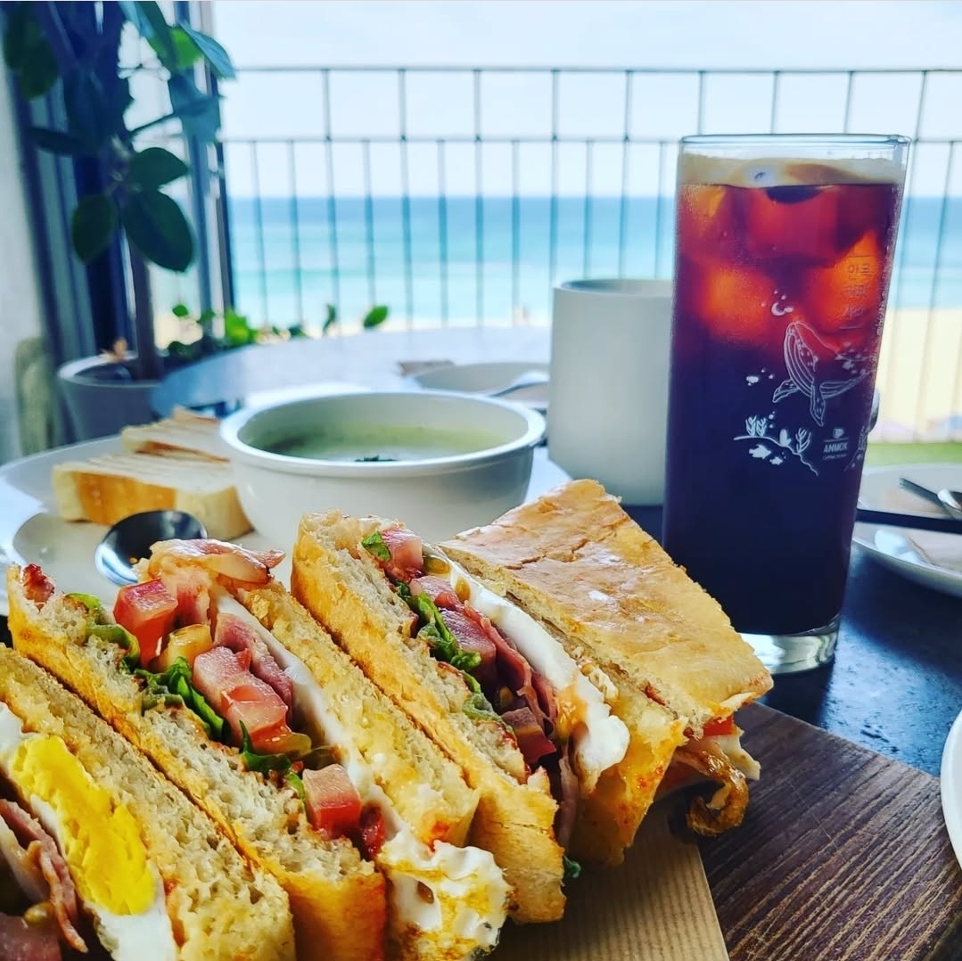- 특징: 바다 바로 앞, 1~3층 통유리 오션뷰, 루프탑 좌석, 브런치&커피 전문