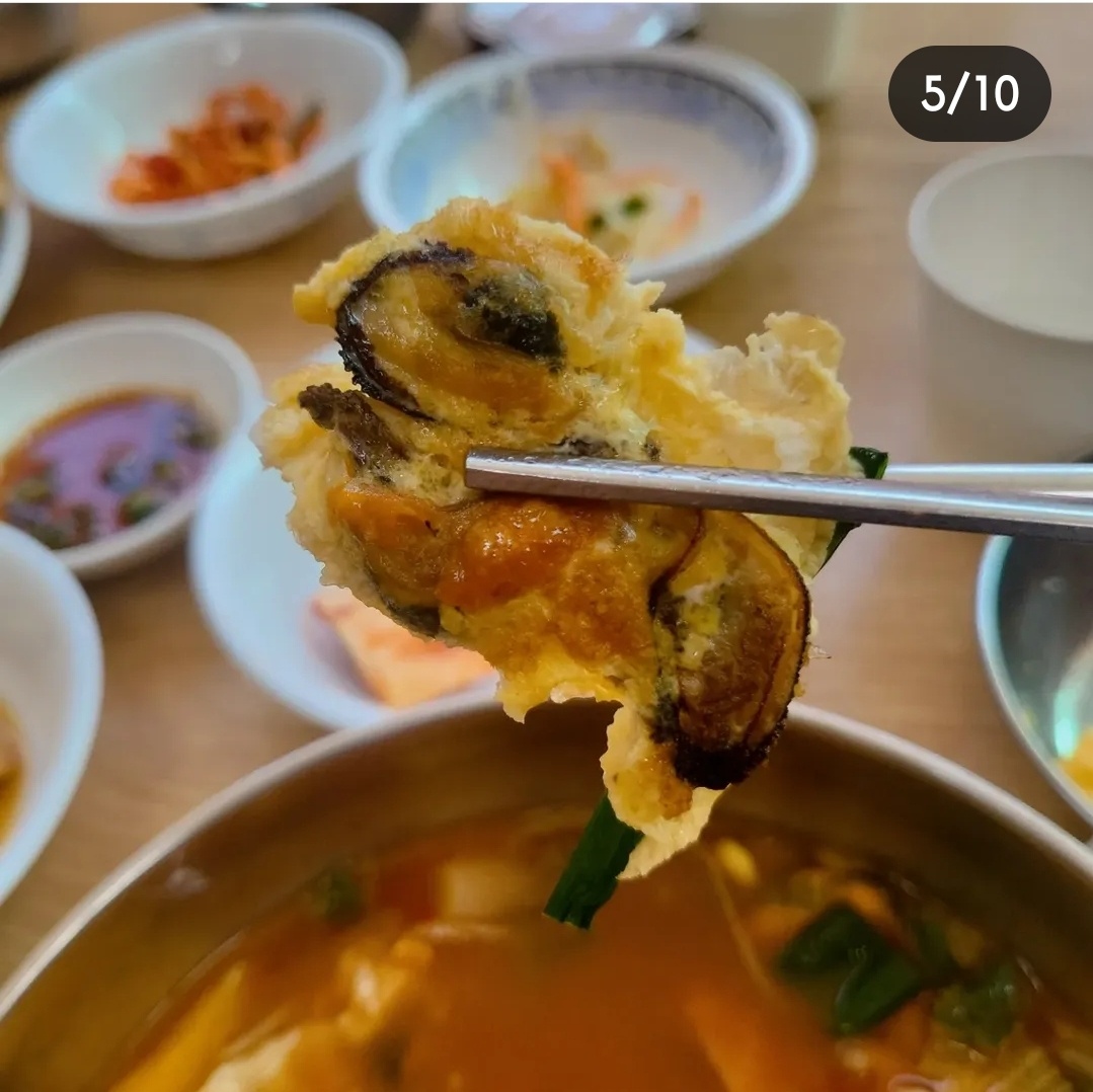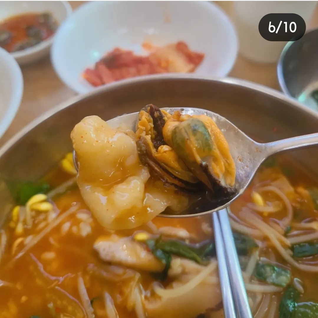 섭(홍합), 콩나물, 수제비, 버섯이 들어간 얼큰하고 깔끔한 국물 요리입니다. 해장이나 점심으로 인기가 많습니다.
