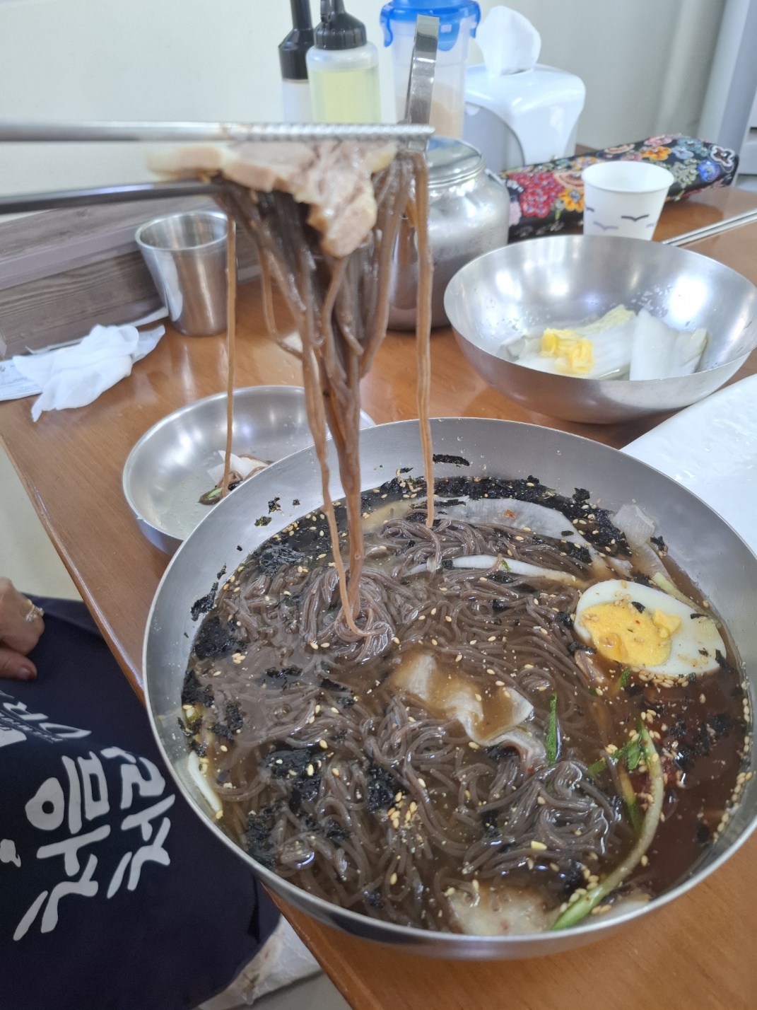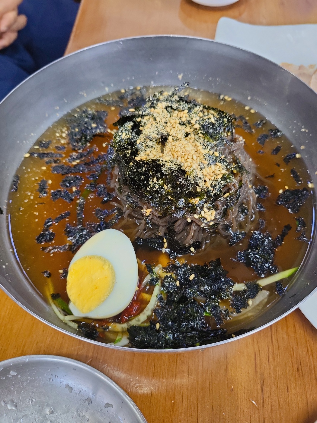 살얼음 가득한 육수와 쫄깃한 메밀면의 조합이 완벽했어요. 특히 기본 반찬으로 나오는 백김치와 함께 먹으면 맛이 더욱 살아나 강력 추천합니다!