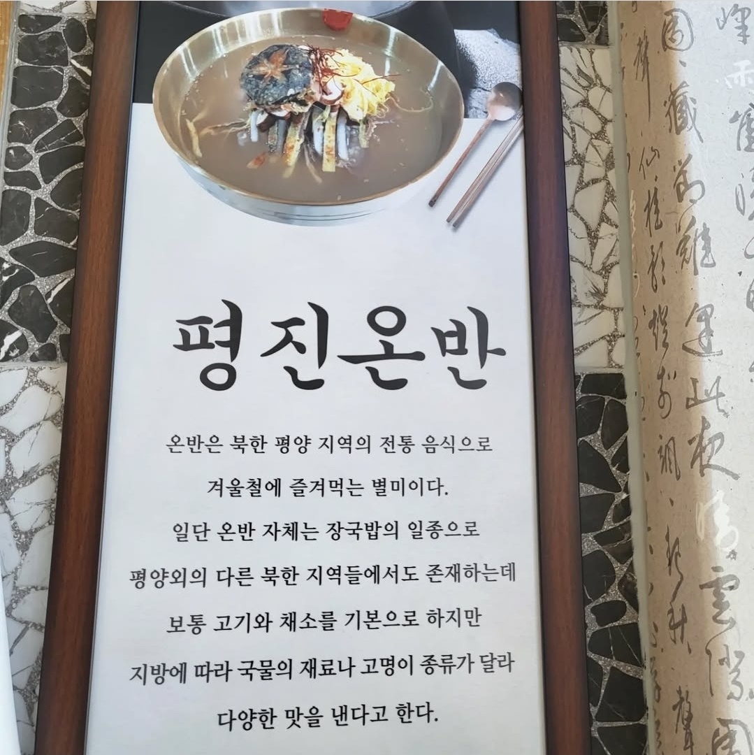 - 특징: 정통 평양냉면 스타일, 겨울철에는 온반 제공