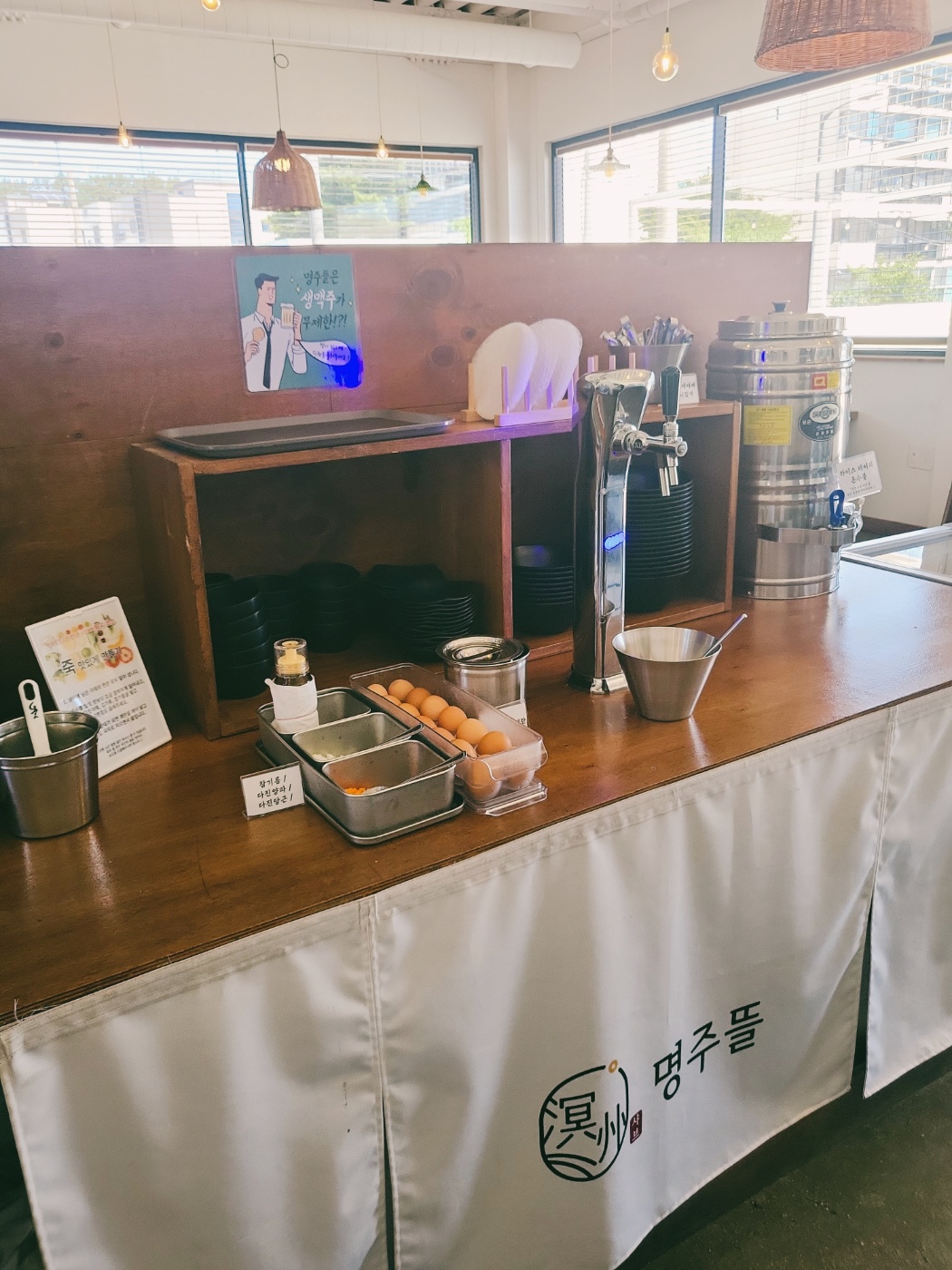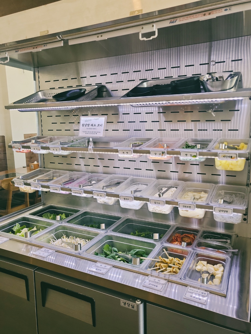테이블 간격도 넓고, 셀프바는 깔끔하게 잘 관리되고 있었어요.