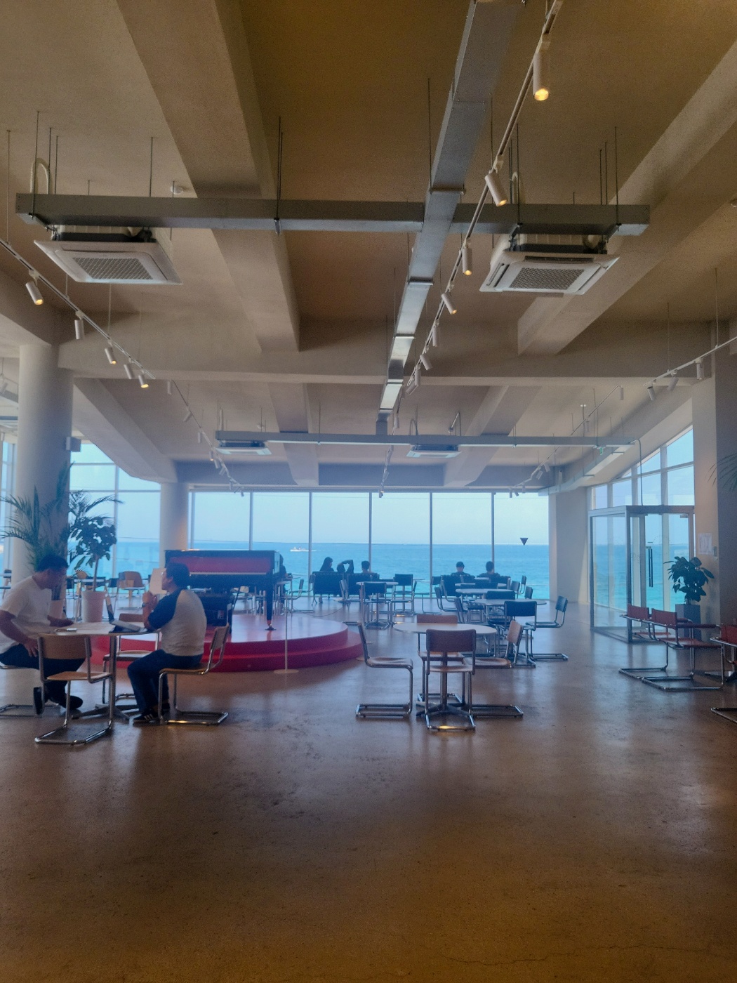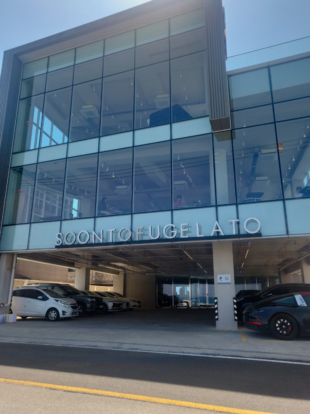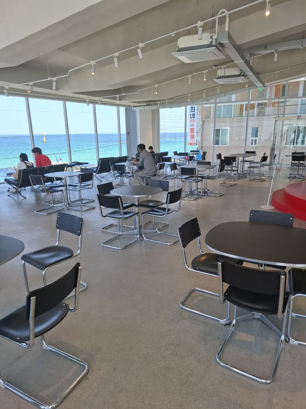 순두부젤라또 3호점은 2~4층까지 운영되는 단독 건물로, 층마다 통유리창으로 바다를 감상할 수 있는 좌석이 마련되어 있어요. 3층은 오션뷰 명당이고, 4층 루프탑은 바람 쐬며 여유로운 시간을 보내기 좋습니다.