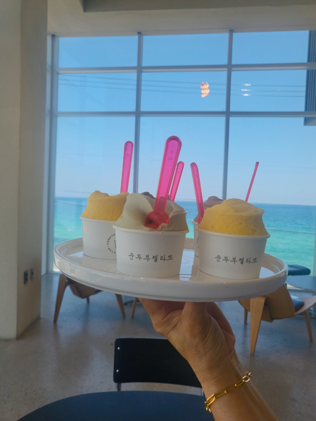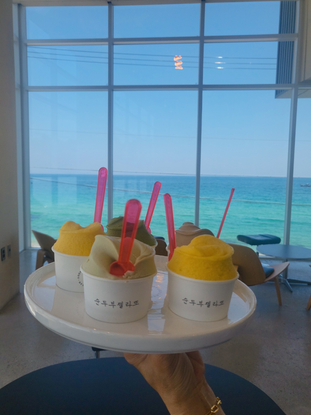 엘리베이터도 있어서 아이나 어르신과 함께 이동하기 편리했고, 매장 내부는 깔끔하고 쾌적한 분위기였습니다. 무엇보다 오늘같이 날씨가 좋을 때는 젤라또 한 입과 함께하는 바다 전망이 최고의 조합이더라고요 😍