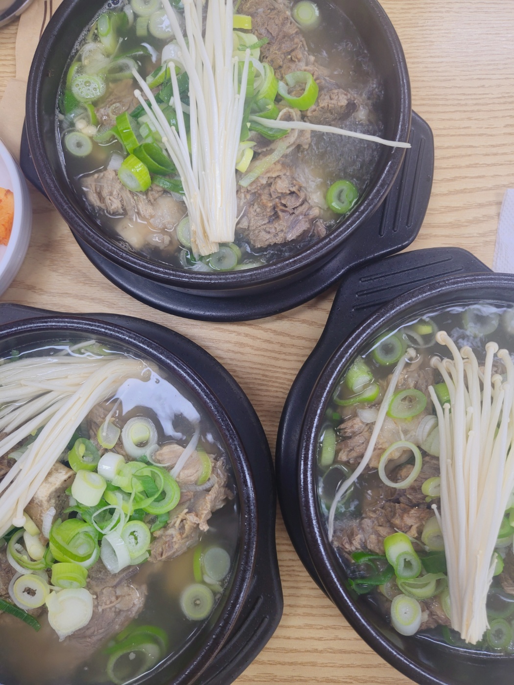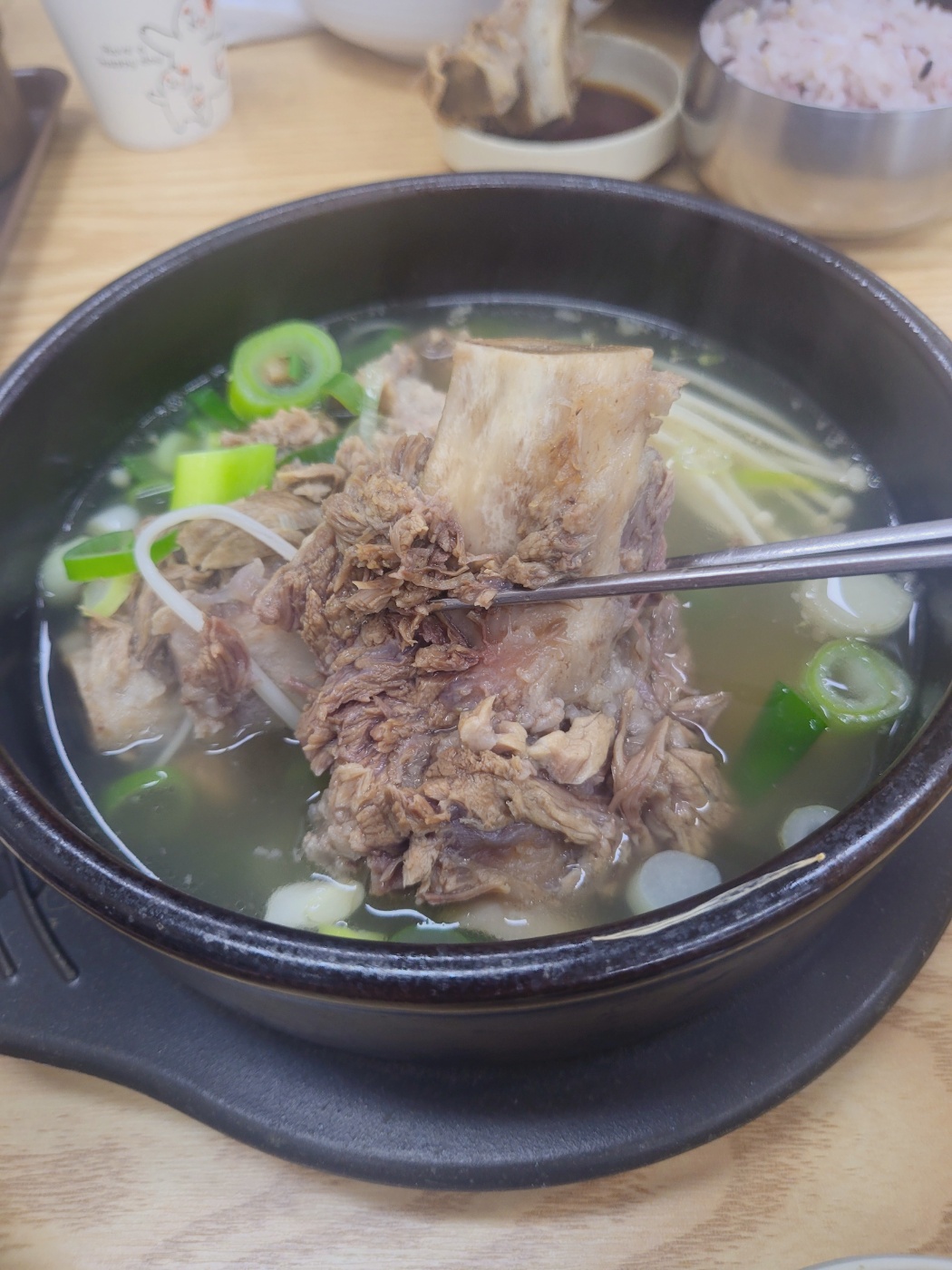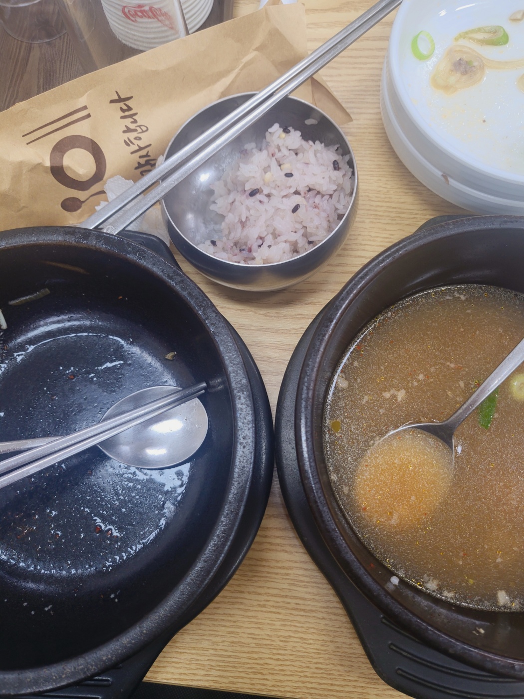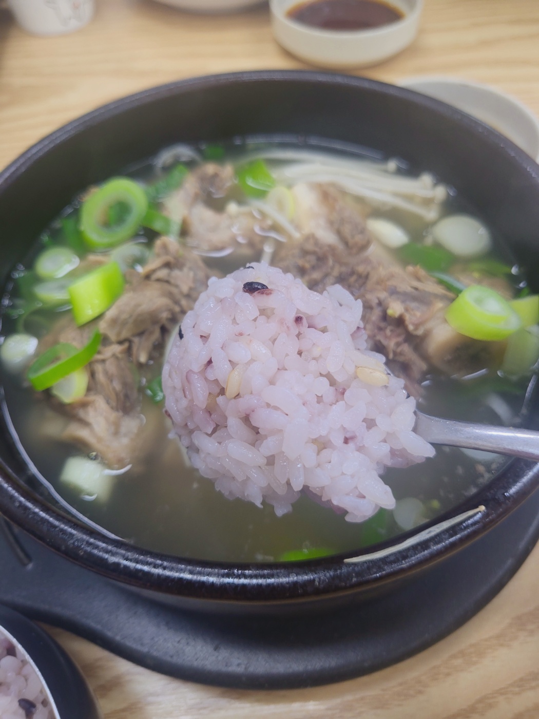 - 왕갈비탕: 큼직한 갈빗대가 들어간 구성으로, 국물도 진한 편이었지만, 한우갈비탕에 비해 고기의 풍미는 다소 아쉬웠습니다. 하지만 기본에 충실한 맛이었습니다.