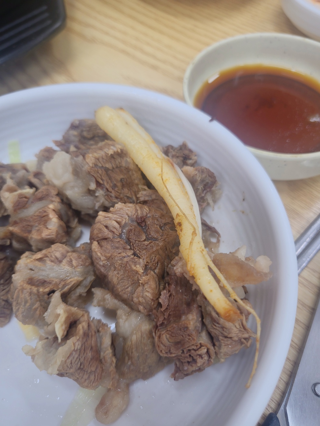 - 한우갈비탕: 국물 맛이 깔끔하면서도 깊고, 고기에서 한우 특유의 풍미가 잘 느껴졌습니다. 특히 고기 5덩어리 (정확히는 4.5덩어리)가 넉넉하게 들어 있어 푸짐하게 먹을 수 있었습니다. 개인적으로는 이쪽이 더 맛있었습니다.