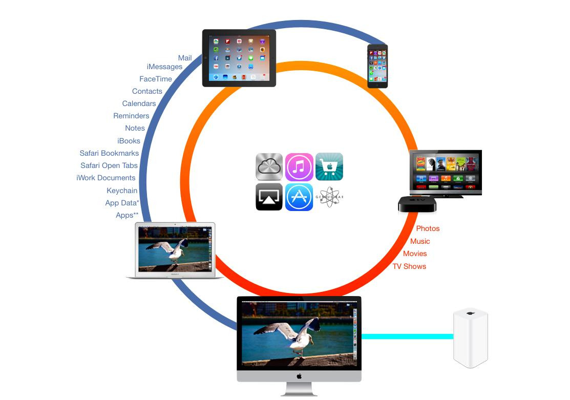 애플 제품을 하나 사면 다른 제품도 함께 쓰게 되는 구조입니다.