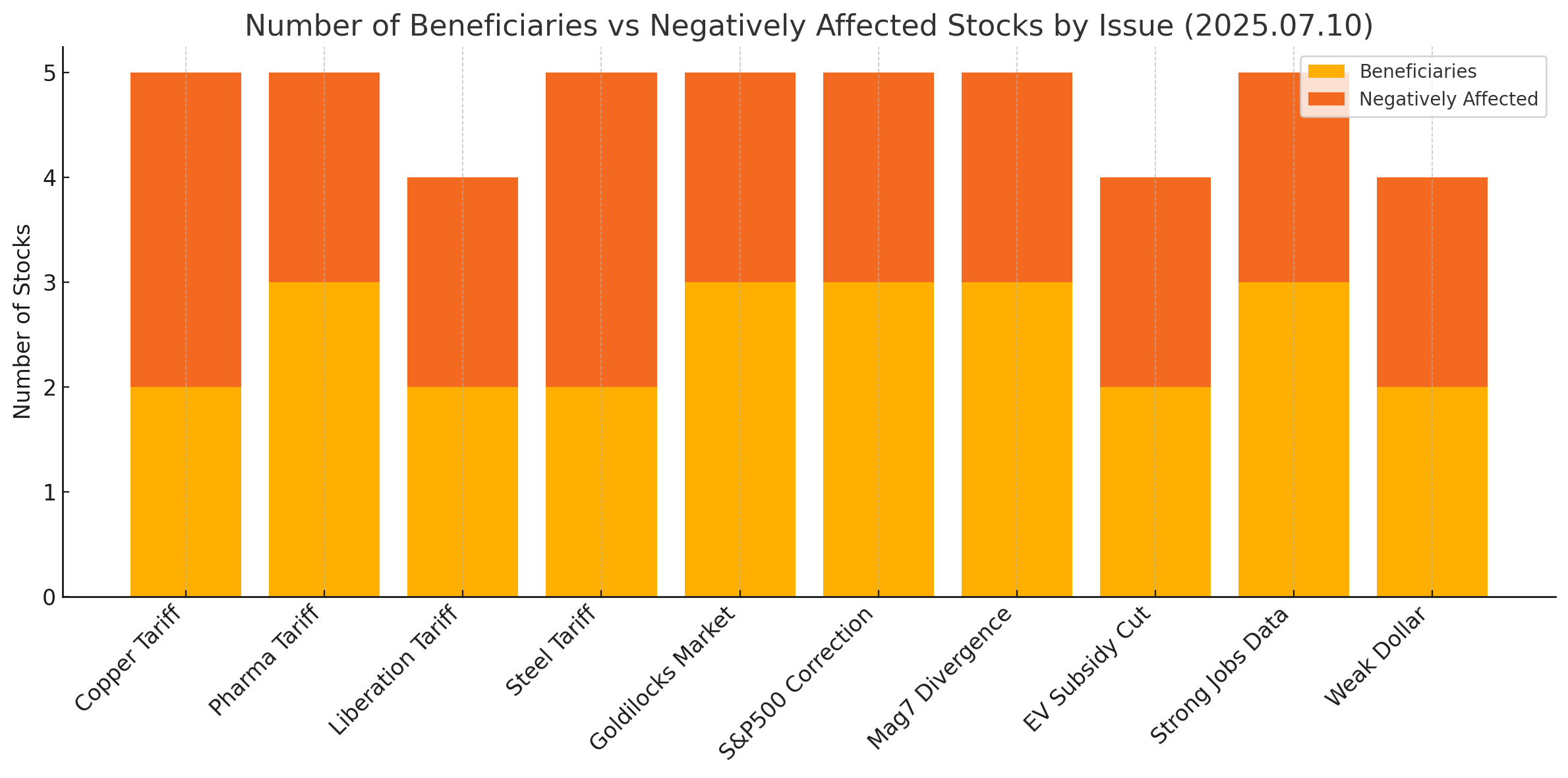 📊 이슈별 수혜주 vs 피해주 분포 (그래프)