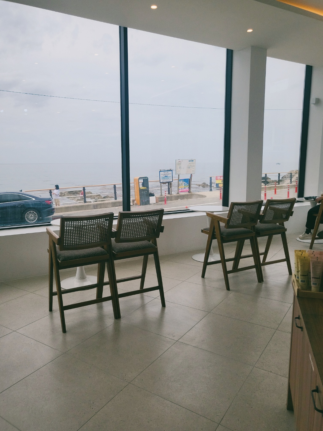1층은 깔끔한 테이블 구조로 바다를 가까이에서 바라볼 수 있는 좌석이 준비되어 있고,
