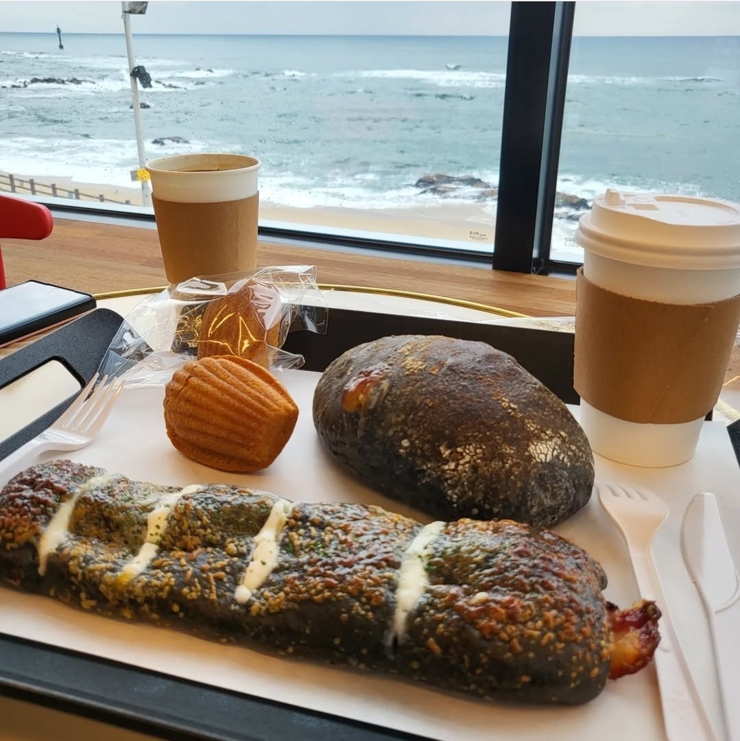 시원한 바다를 배경으로 커피와 빵을 즐기니, 힐링이 이런 거구나 싶더라구요 😍