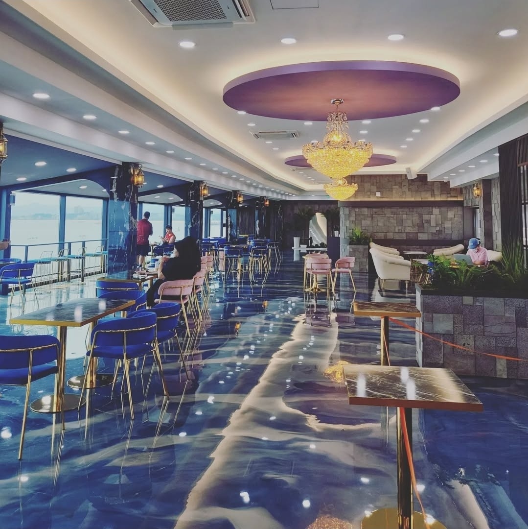 카페 내부는 바닥이 유리처럼 디자인되어 있어서,