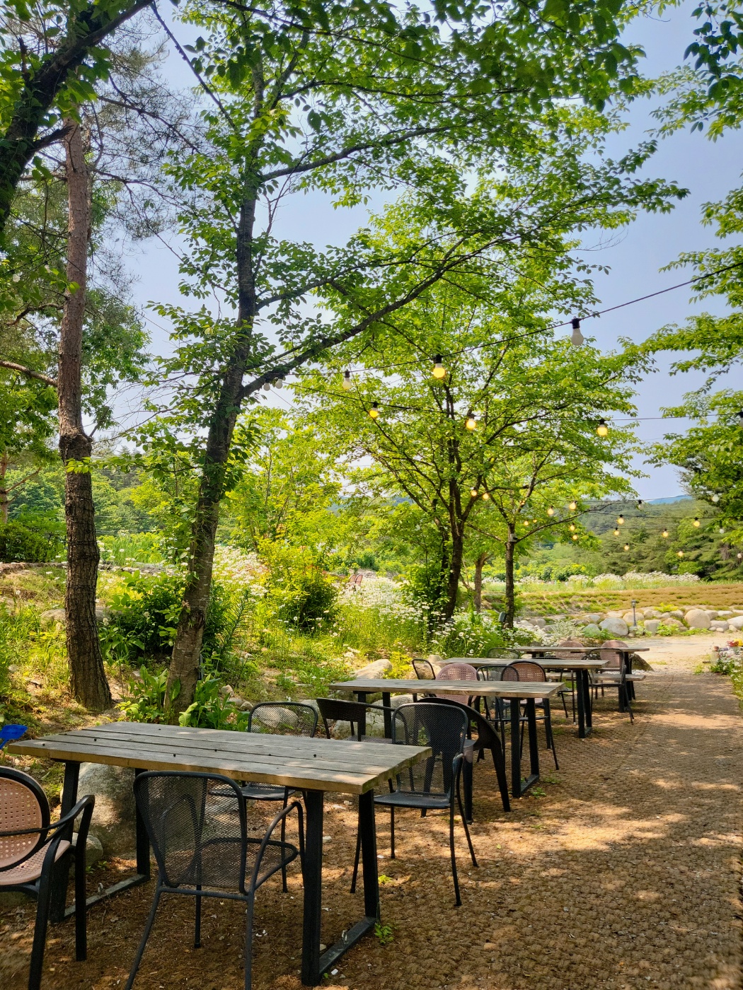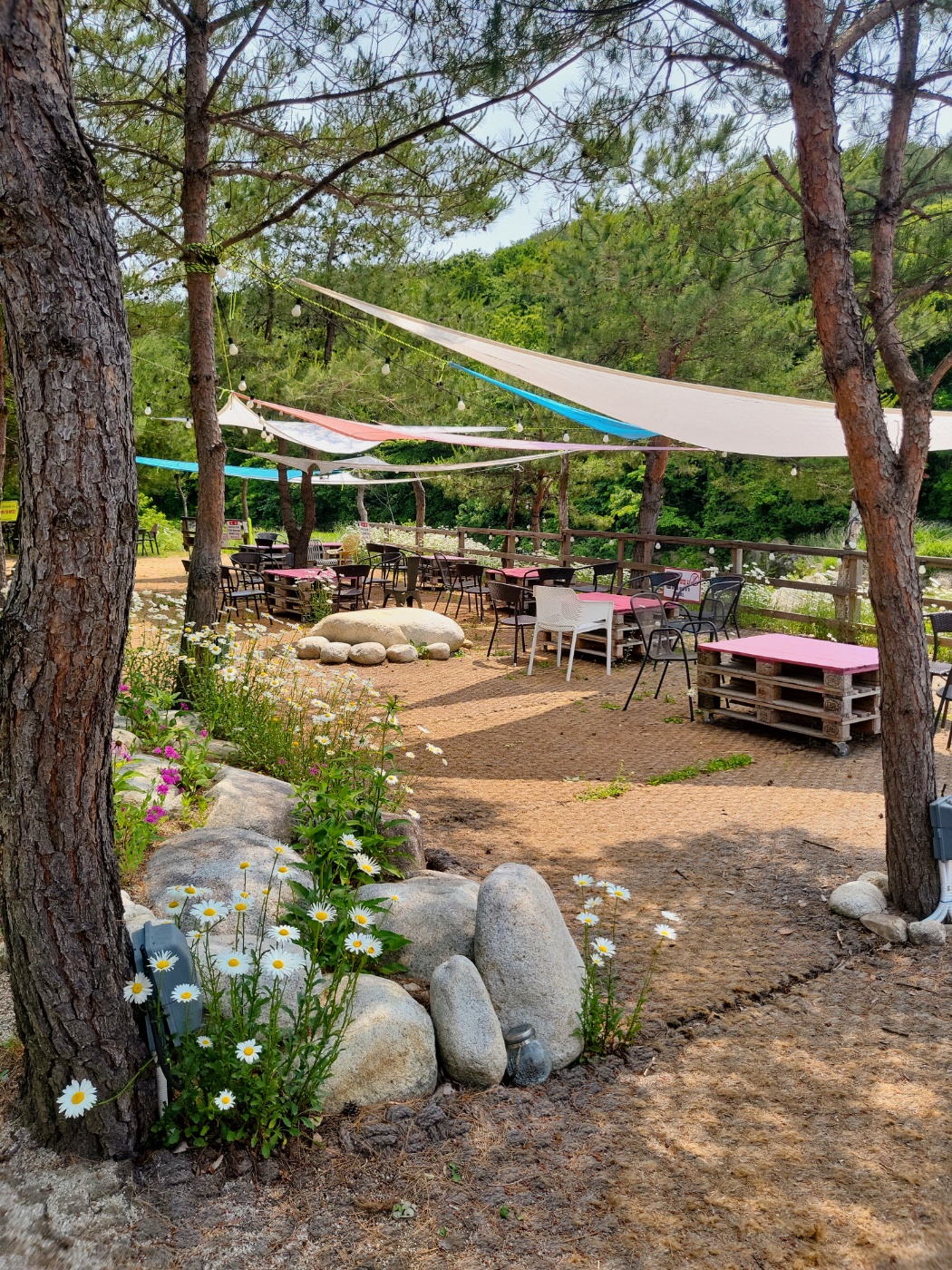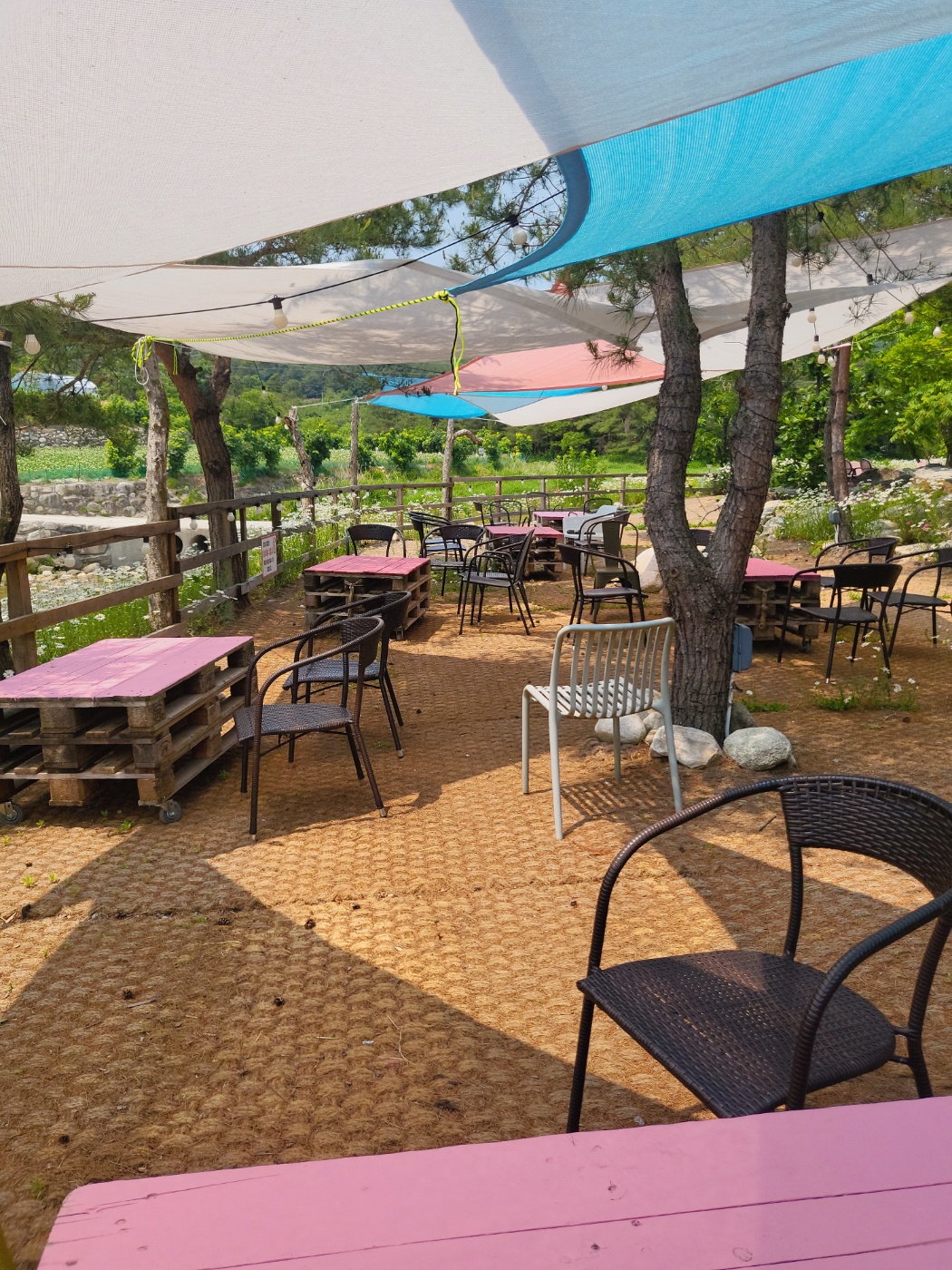 계곡 옆 좌석: 여름철 계곡 물소리를 들으며 커피를 즐길 수 있는 특별한 좌석