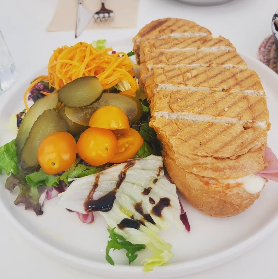향긋한 바질페스토와 치즈가 어우러진 담백한 파니니.