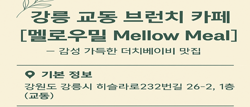 강릉 교동에서 감성 가득한 브런치를 즐기고 싶다면?