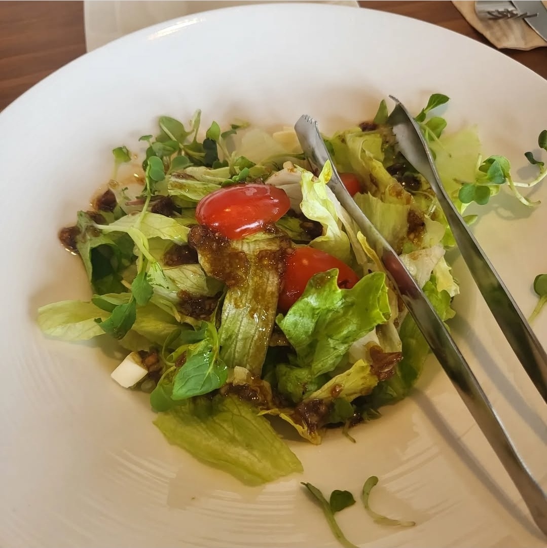 - 샐러드는 신선한 채소와 상큼한 드레싱이 가득.