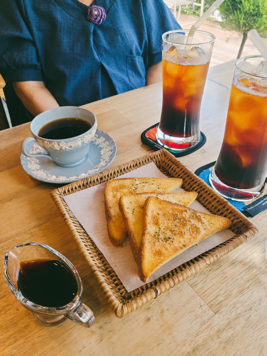 사장님이 직접 추천해주신 블렌딩으로, 깊이 있는 향이 인상적이었어요. - 서비스 토스트 & 루이보스티