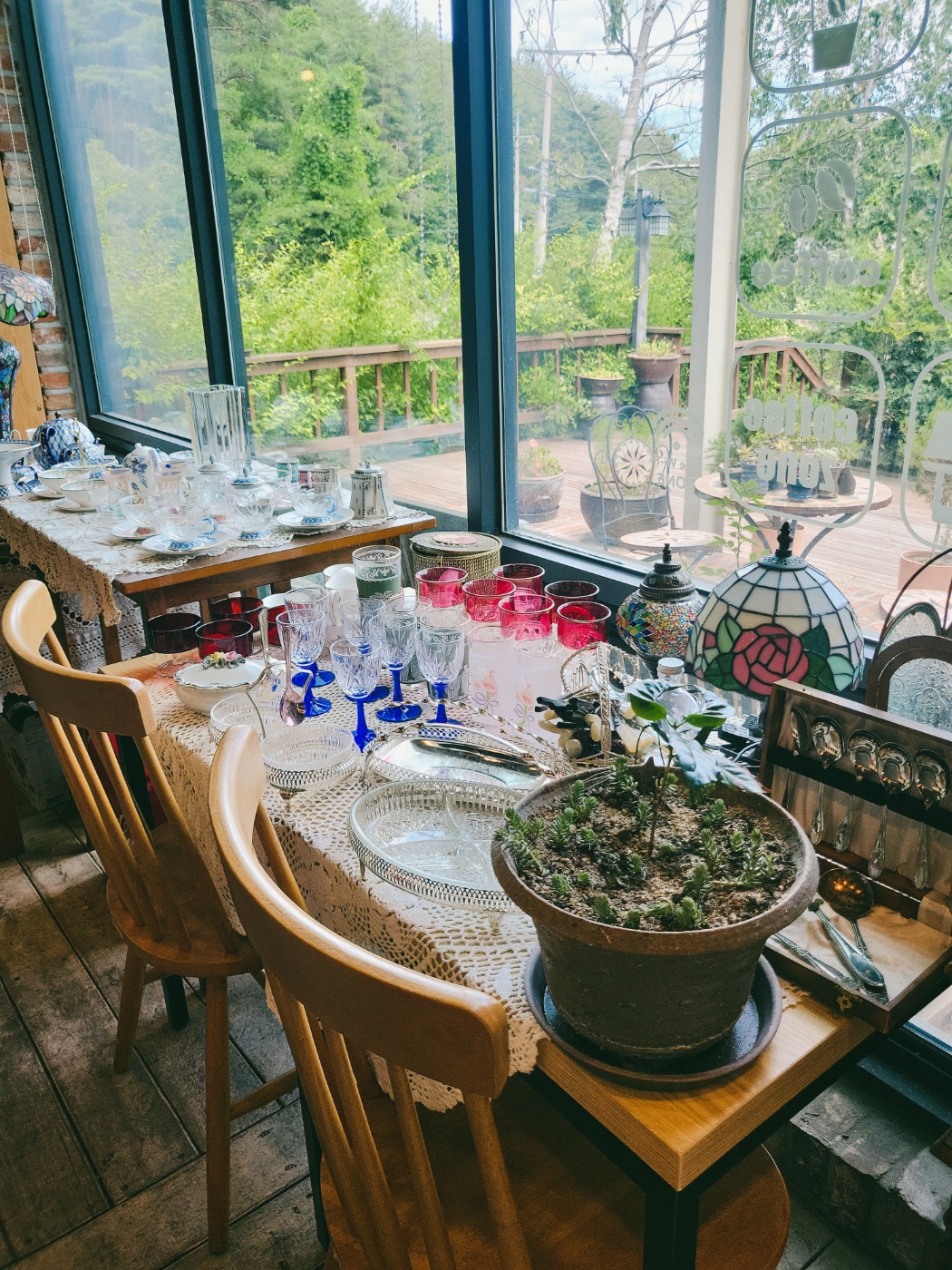 - 통유리 너머로 펼쳐진 자연풍경 덕분에 시선이 탁 트이고 마음도 정화되는 기분