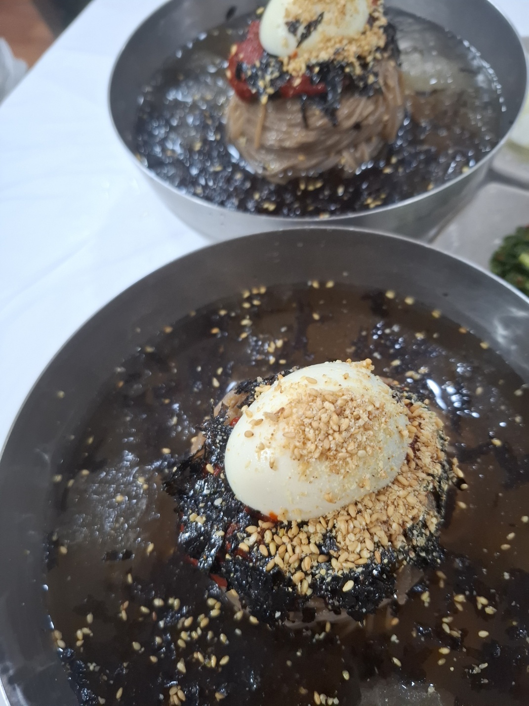오늘은 손님과 함께 물막국수를 선택했어요.