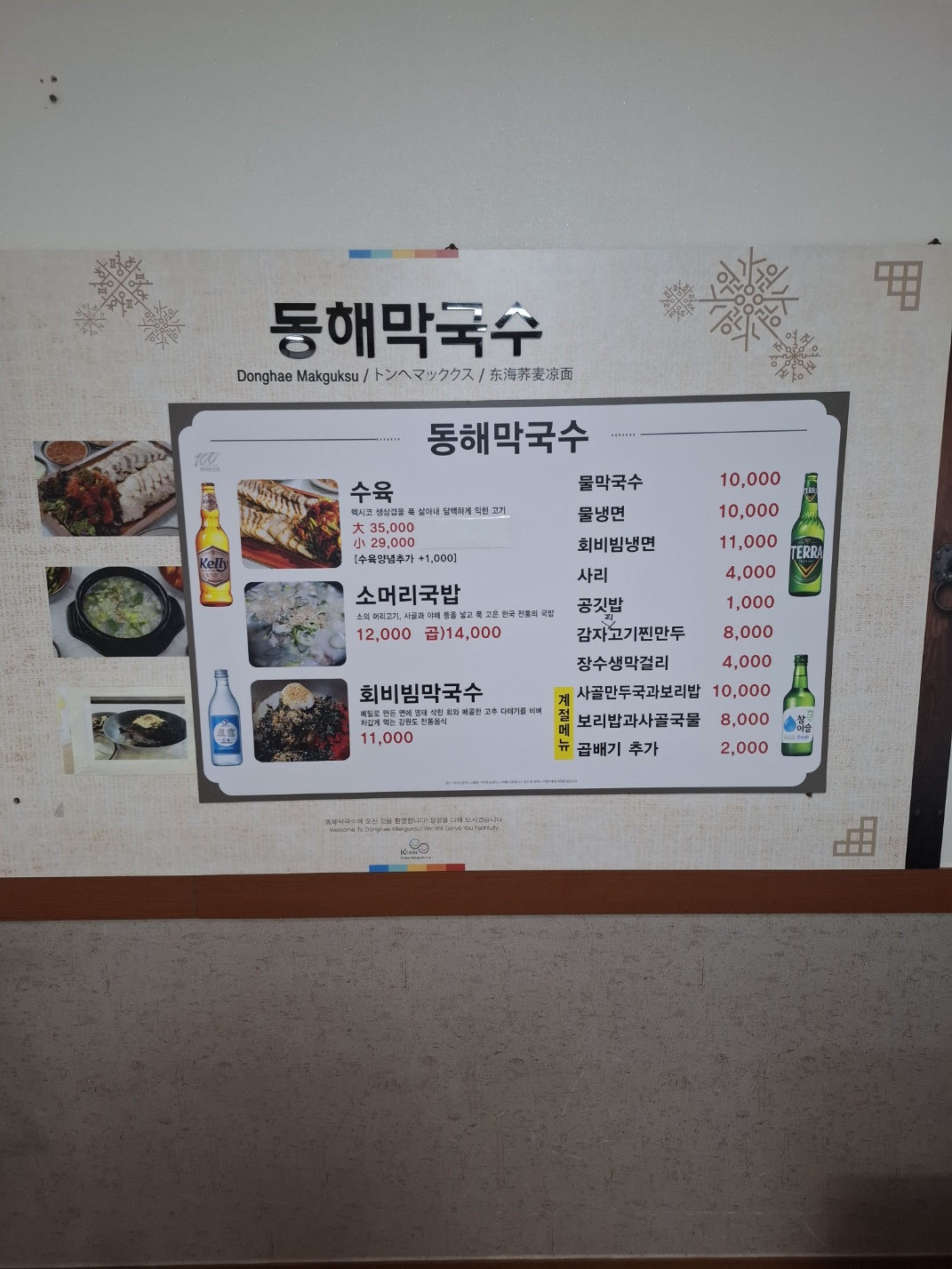 | 수육 (소/대) | 29,000원 / 35,000원 | 잡내 없고 부드러운 고기, 막국수와 환상 궁합 |