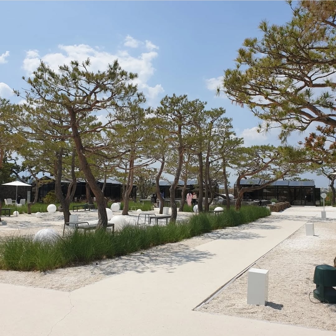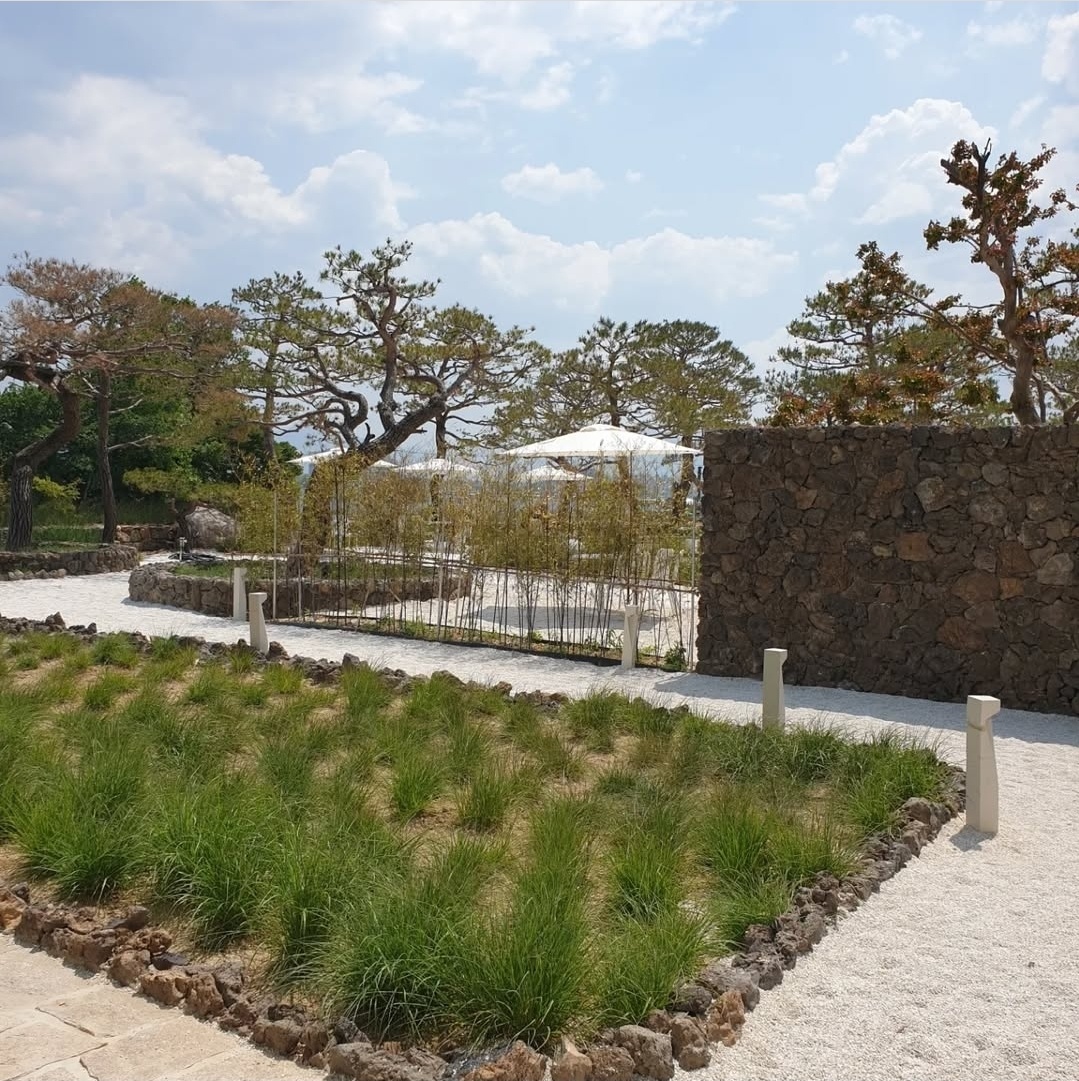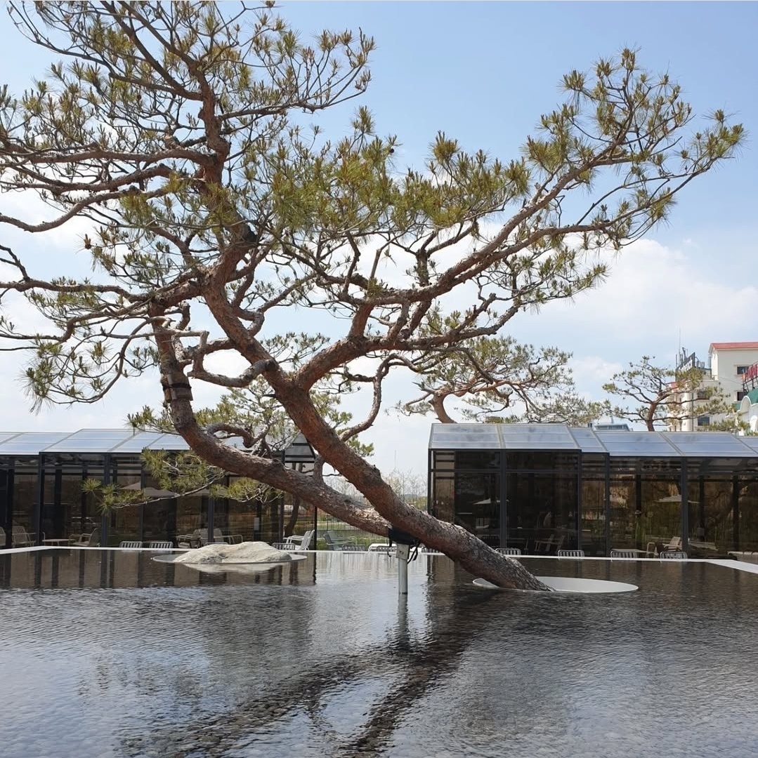 소나무 정원과 잔잔한 연못, 그리고 유리 온실로 지어진 카페 건물이 마치 수묵화 속 한 장면 같더라고요.