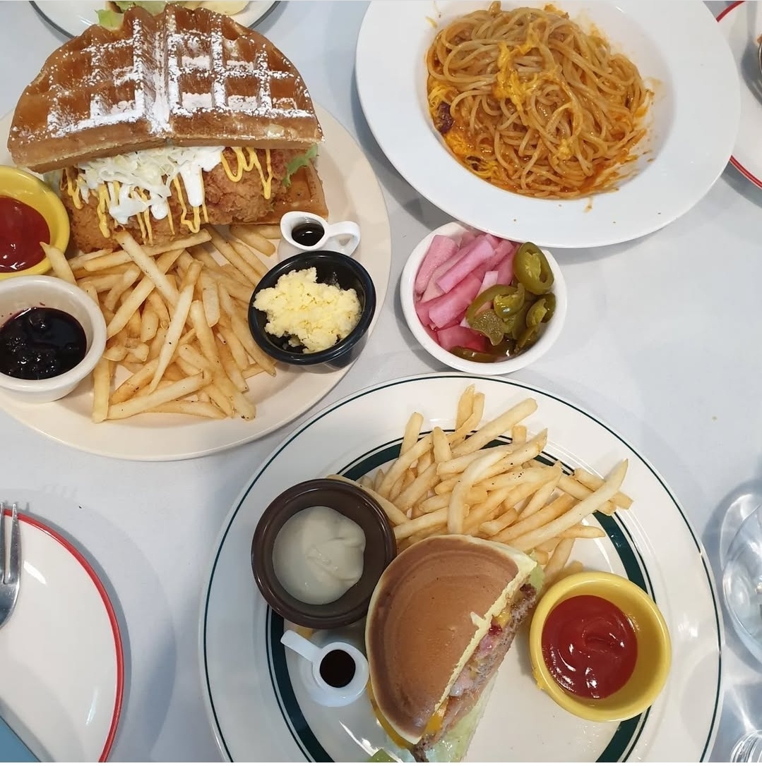 리틀다이너는 일반적인 버거집과 달리, 팬케이크·와플·파스타가 어우러진 독특한 메뉴가 특징이에요.