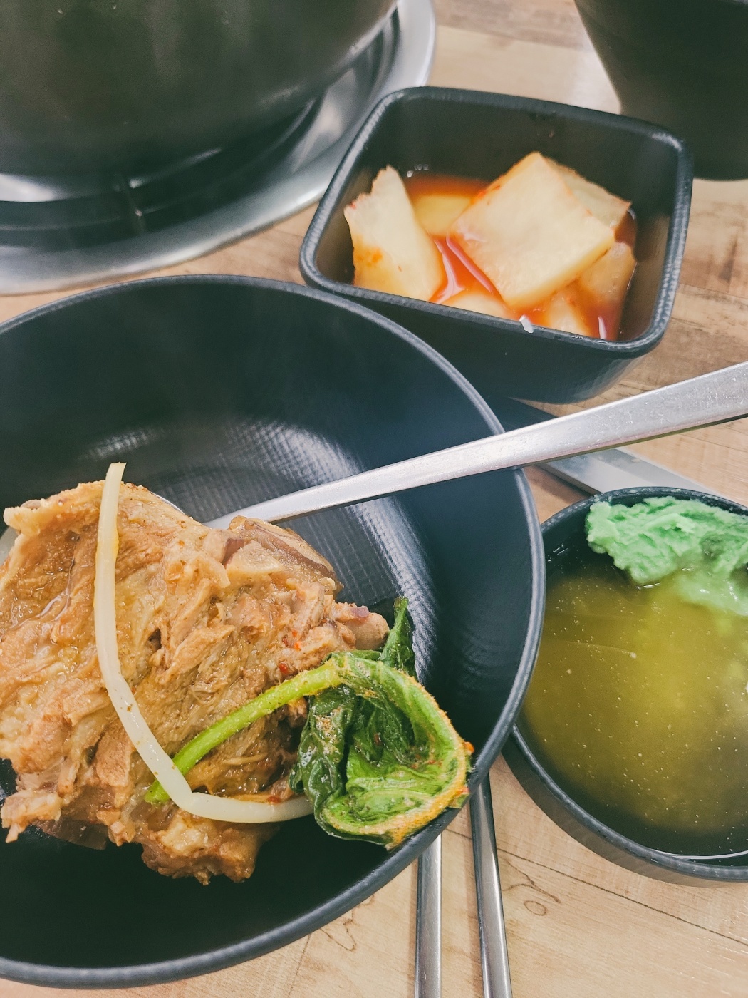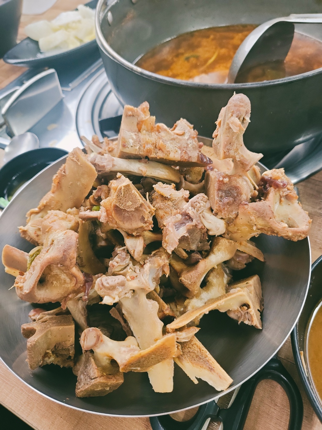 다른 감자탕집보다 양념이 과하지 않아서 국물이 담백하고 깔끔한 게 특징이에요 🍲💕