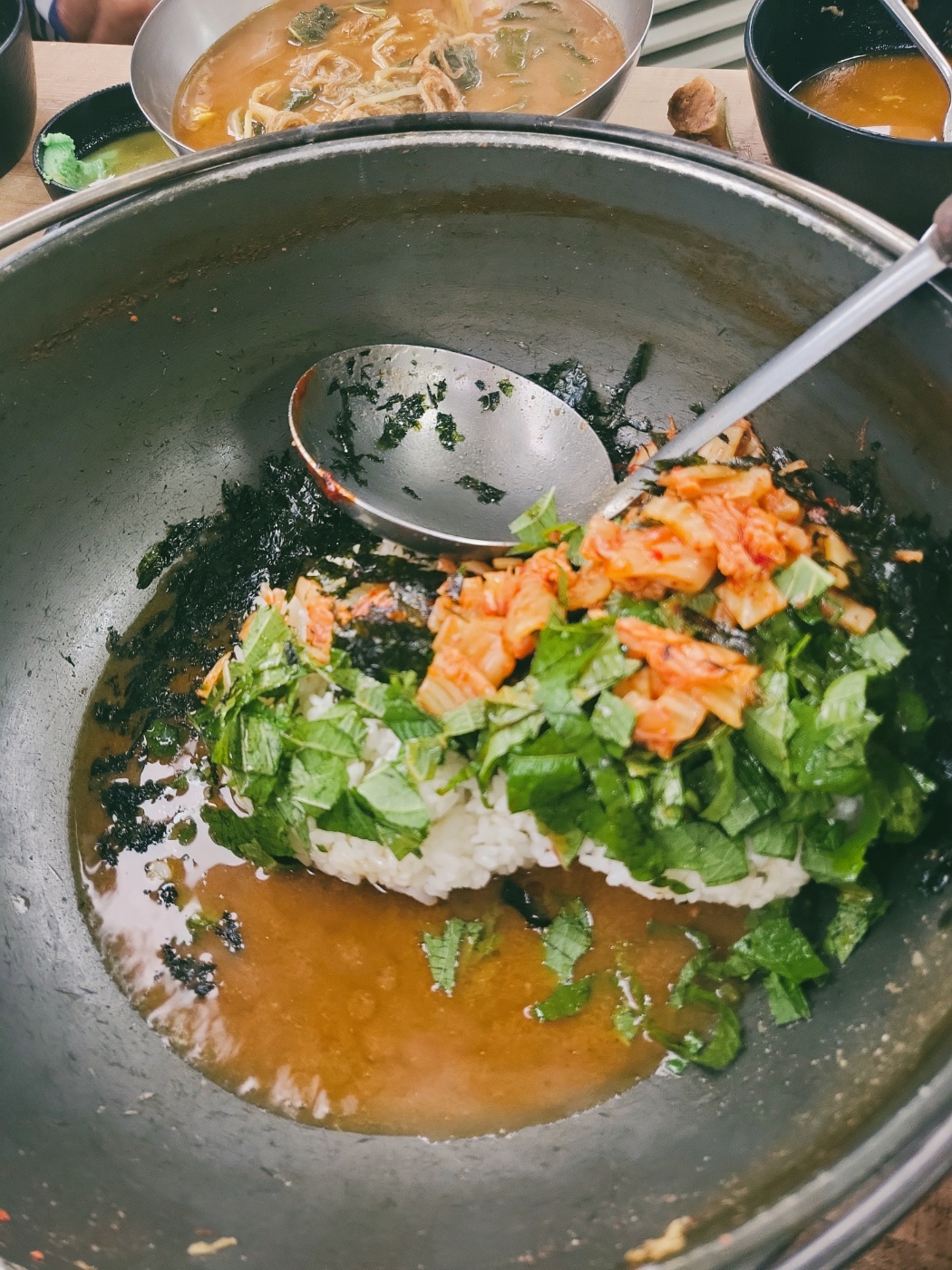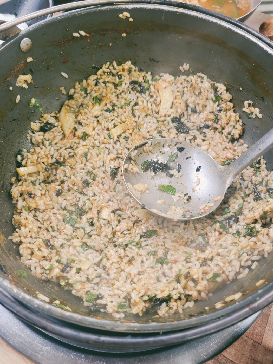남은 국물에 밥을 볶아 먹으니 참기름 향 솔솔~ 김가루 뿌려서 고소함 폭발 💥