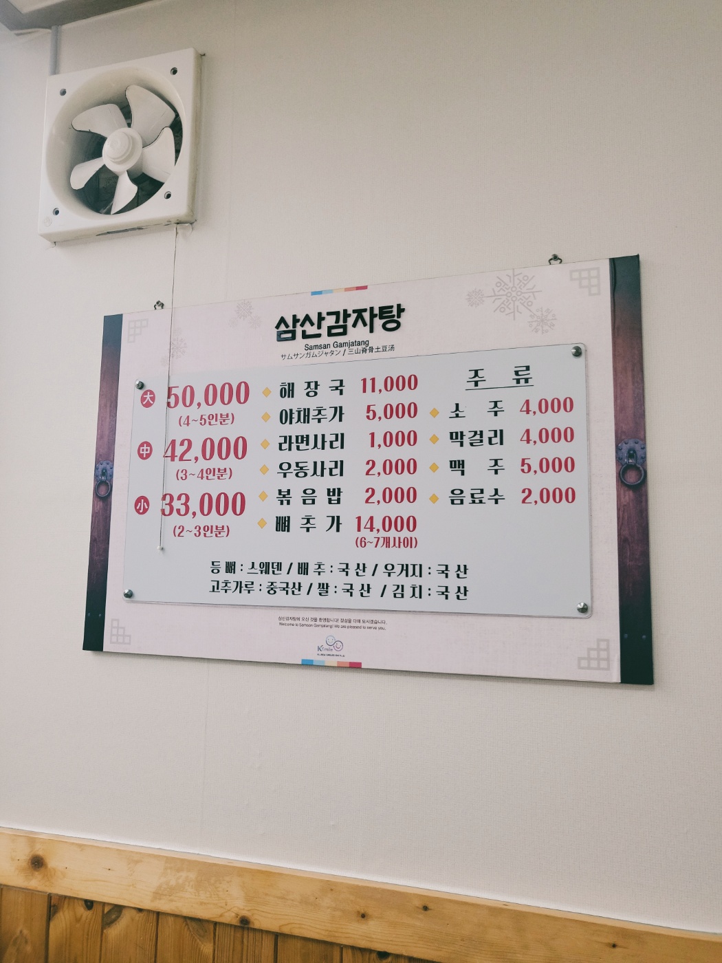 - 감자탕 (대, 4~5인분) : 50,000원