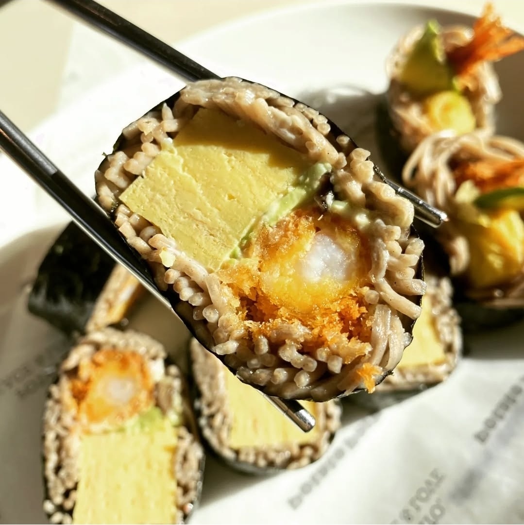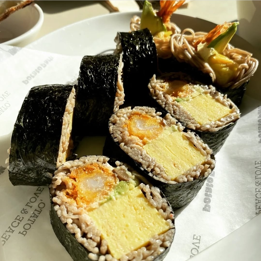 메밀김밥 필 무렵 메밀로 감싼 김밥 속에 새우튀김, 계란말이, 오이까지! 깔끔한 맛