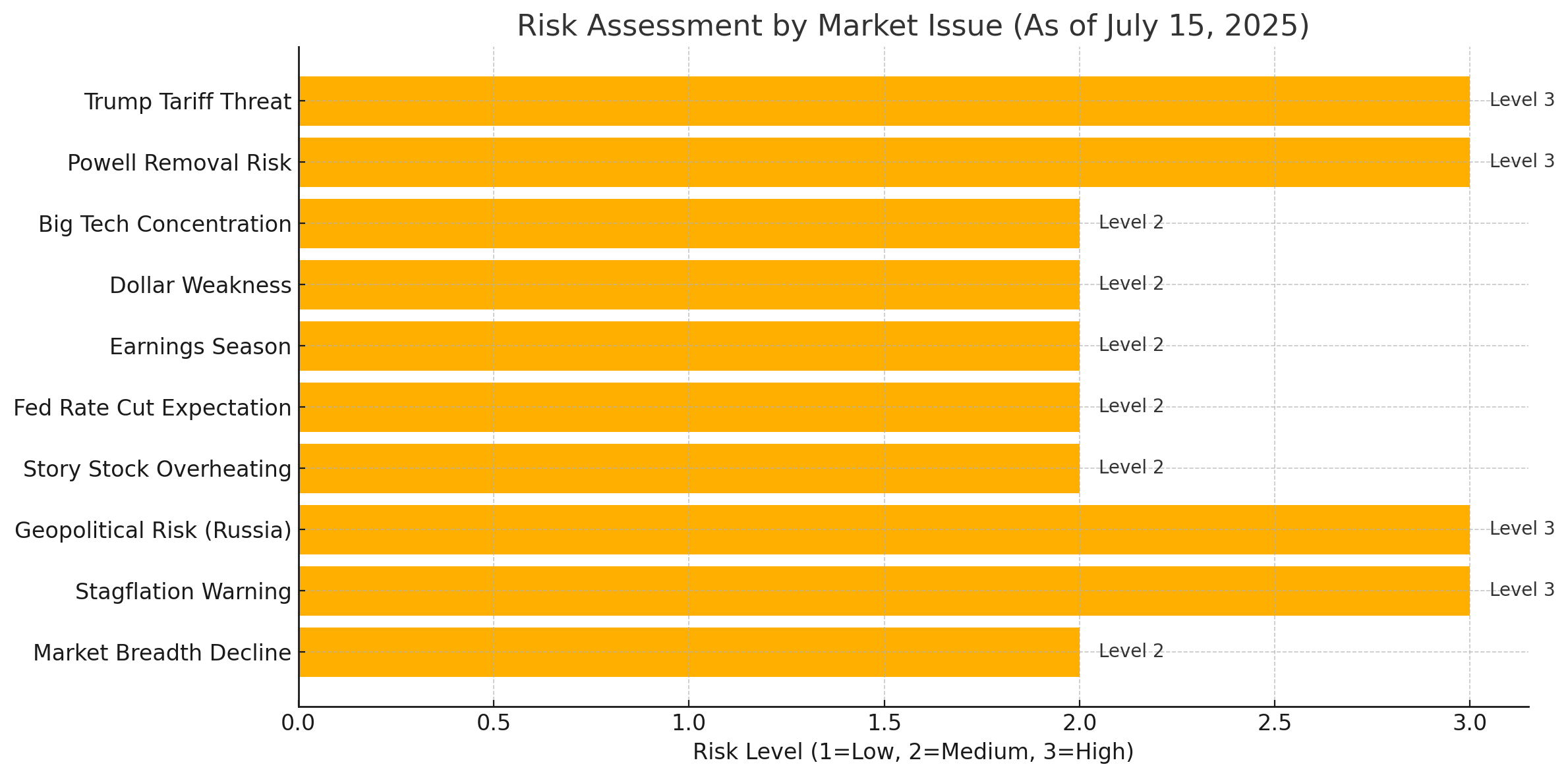 미국 증시는 현재 수많은 거시적 변수와 지정학적 리스크 속에서 급격한 방향성 싸움에 놓여 있습니다. 오늘은 2025년 7월 15일 (한국 시간 오전 3시 기준) 기준으로, 전체 미국 증시에 영향을 주는 10가지 핵심 이슈를 정리하고, 각 이슈별로 배경, 단기/중장기 영향, 수혜주/피해주, 대응 전략, 리스크 등급, 포지션 전략을 모두 분석했습니다.